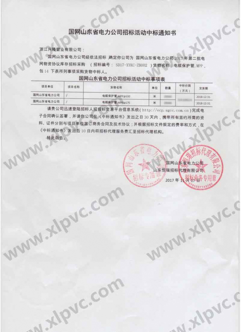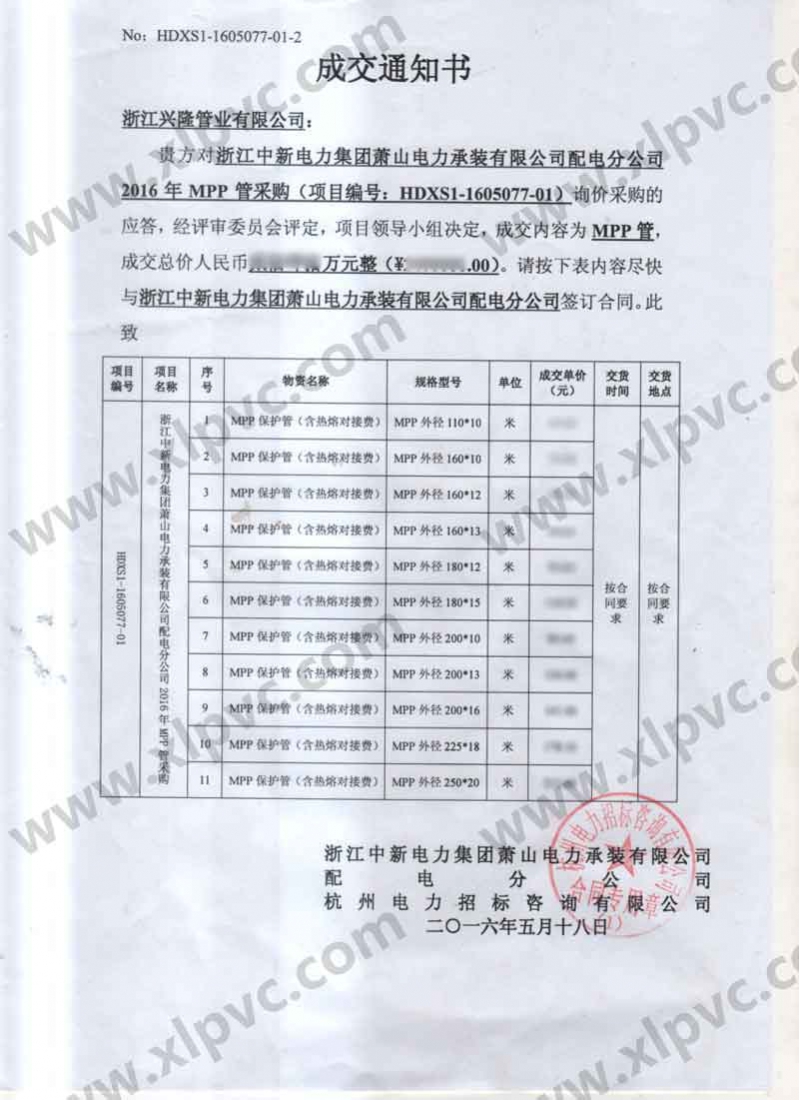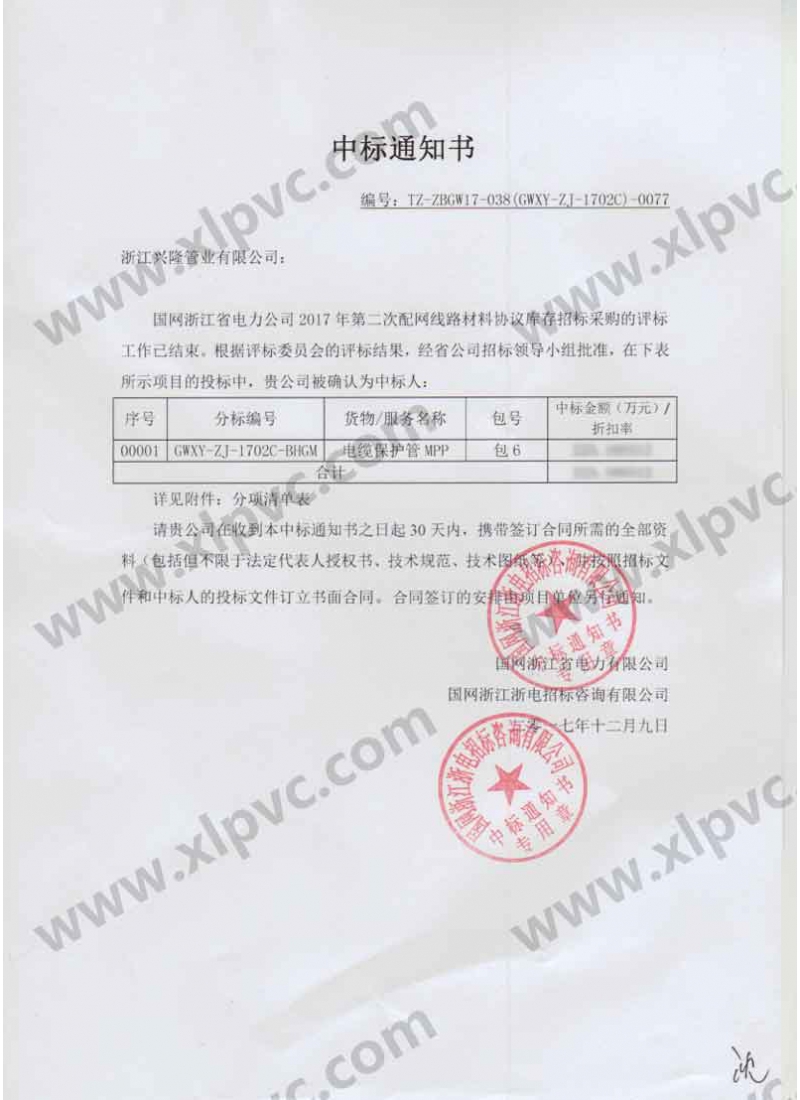 中標(biāo)通知書